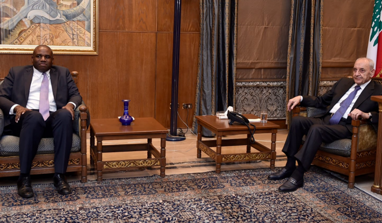 الرئيس بري تابع مع وزير خارجية حكومة الظل البريطاني التطورات واستقبل ماغرو والعريضي .