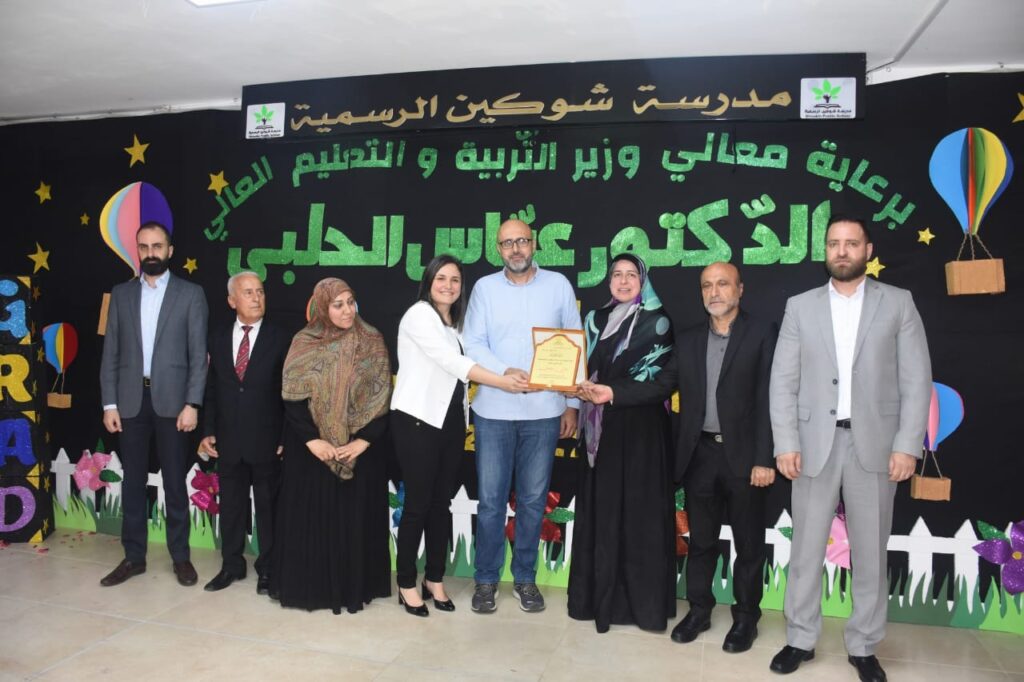 بعد ذلك قدمت شعيب وممثلي النواب درعا الى الوزير الحلبي تسلمته ممثلته الدكتورة خوري، التي تسلمت ايضا درعا تقديريا .ثم جرى تكريم الطلاب المتخرجين وعدد من الاساتذة ، كما تم تقديم دروع تقديرية لمسؤول مكتب الوكالة الوطنية للاعلام في النبطية الزميل سامر وهبي وللزملاء علي شبيب، مصطفى الحمود وحسان الحموي على مواكبتهم ودعمهم الاعلامي لنشاطات المدرسة.